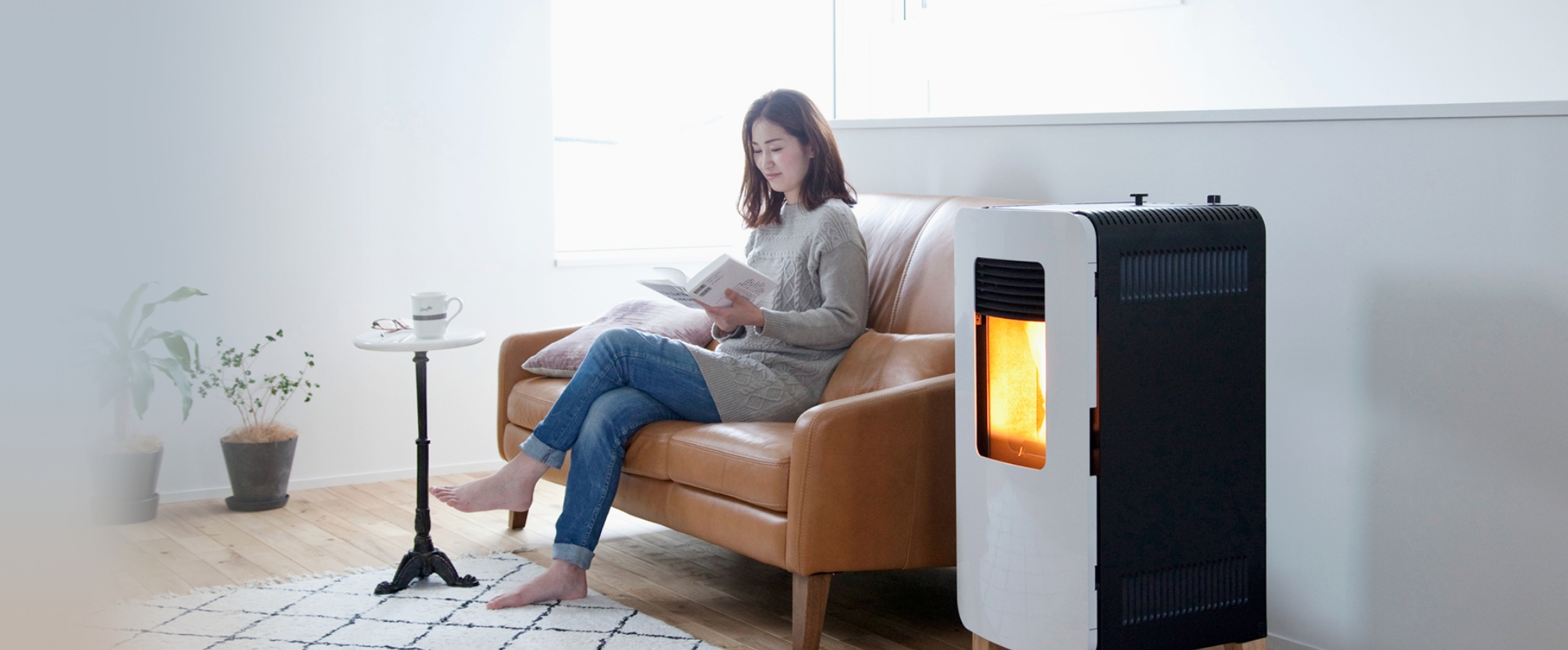 木質ペレットを燃料として使用する環境にやさしい暖房機器です。本体の燃料タンクに木質ペレットを入 れれば、誰でも簡単にスイッチ一つで使用する事ができます。排気の煙は最初の数分間のみなので、近隣 への影響はほとんどありません。また、大ががりな工事は必要なく、既存の住宅にも簡単に設置する事が できます。