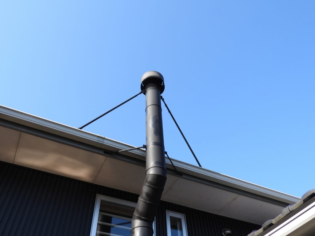 ほとんどのペレットストーブは、電気を使った強制吸排気ですので、薪ストーブのような煙突は必要あり ません。エアコン工事と変わらない手軽さで設置可能です。
